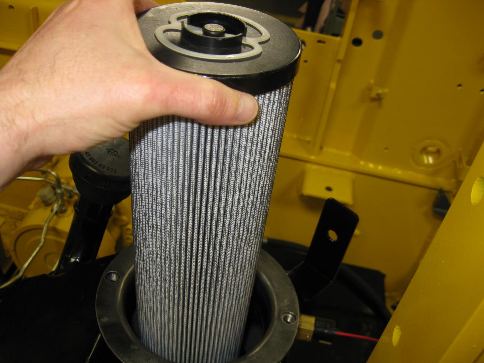 7.Apply a small amount of hydraulic oil to the o-ring at the bottom of the new filter and install the new filter element in the reservoir.
