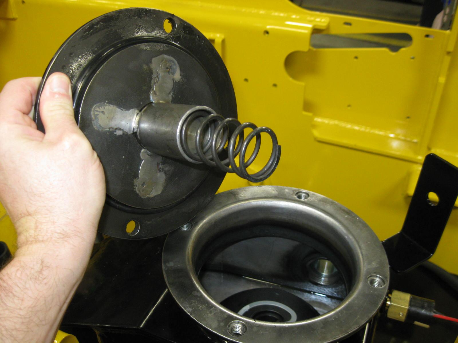 5.Remove four bolts on the cover plate and remove the plate and spring.