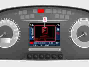 M54.00-1818-71 The triggering of the fire extinguishing system (e.g. due to a fire in the engine compartment) is indicated by a symbol (1) in conjunction with the malfunction text “Feuer Motorraum” (Engine compartment fire) on the display screen. Operation