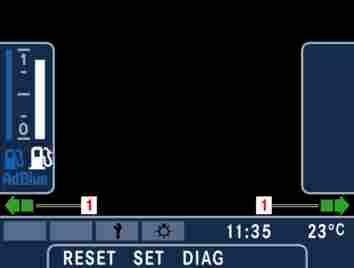M54.00-1703-71 Trailer turn signals (1) on the display screen flash at the same frequency as the turn signals. Driver's area controls
