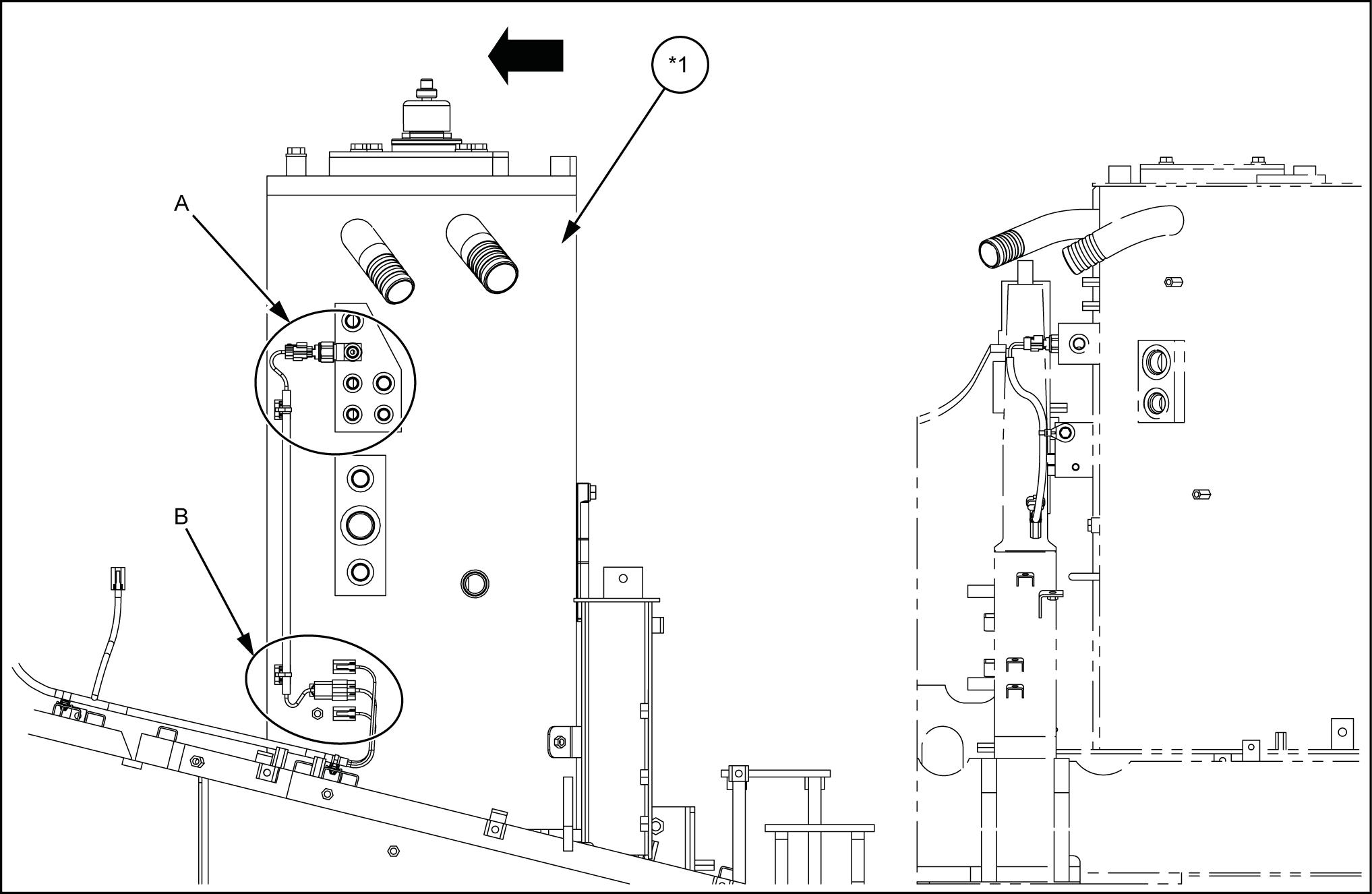 Entfernen Sie das Winkelstück und die V gen P und T vom Hydraulikölbehälter (*1) und montieren Sie dann das T - Stück (64)