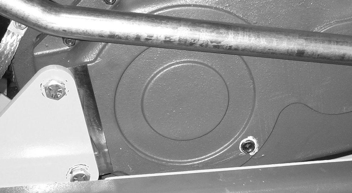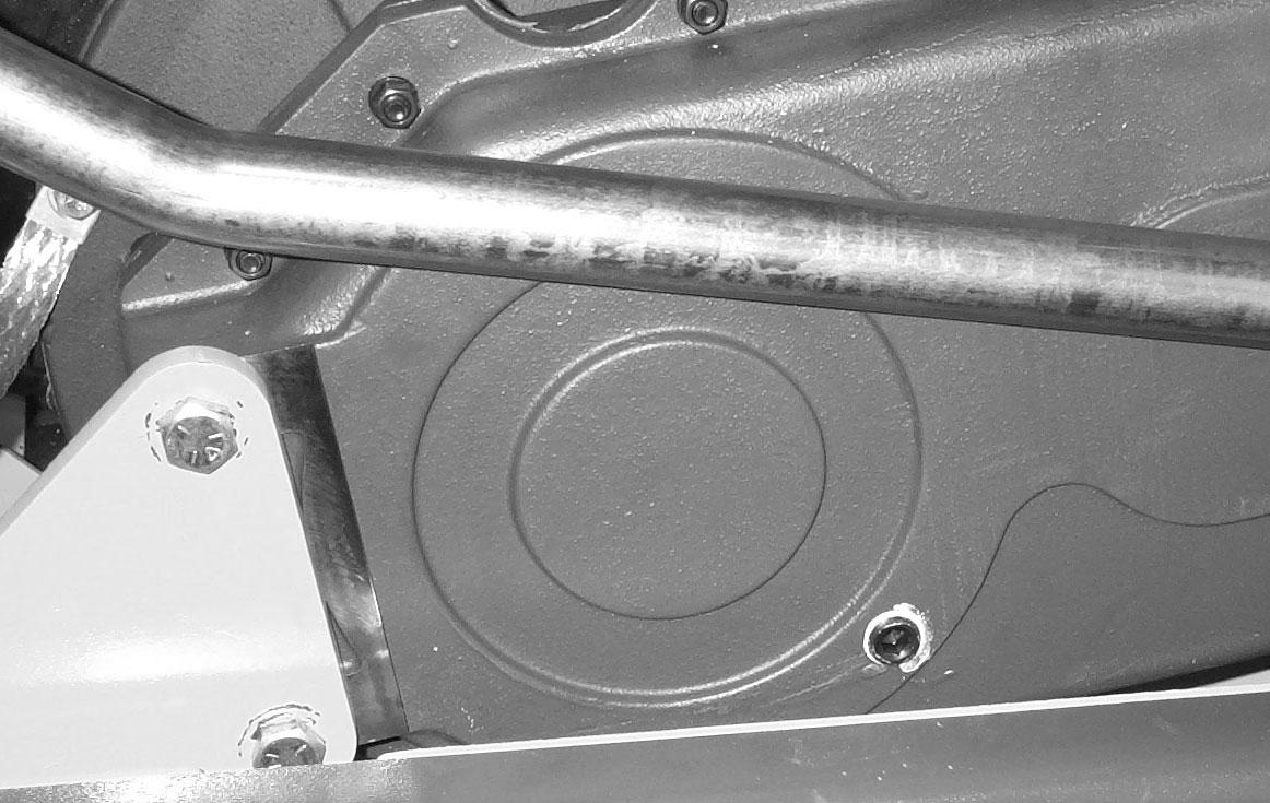 Clean all dirt and debris from around the area where the hydraulic system suction (large) hose connects to the wall of the reservoir.