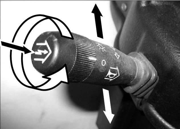 5.Pull the control lever upward to activate “low” beam (dipped-beam light). .