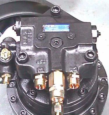 Immediately after turning off the engine, the engine’s components and oil are very hot. This may cause burns. If the inside of the travel drive is under pressure, the oil or plug may be forced out.