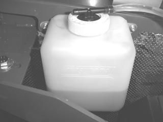 Hydraulic reservoir is under pressure. Never use your hands to search for hydraulic fluid leaks; use a piece of paper or cardboard to find leaks. Escaping fluid under pressure can be invisible and can penetrate the skin, causing serious injury. If any fluid is injected into your skin, see a doctor immediately. Injected fluid MUST be surgically removed by a doctor familiar with this procedure, or gangrene may result.