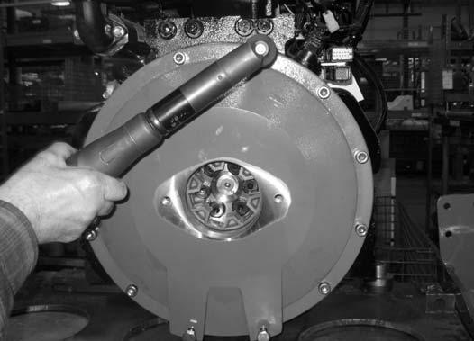 2.Remove socket-head screws securing the flywheel housing (Q) to the engine. Use Loctite™ 242 or equivalent to reinstall. Torque all screws to 45 Nm (33 lb.-ft.).