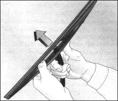 To remove the brushes lift the wiper arm, rotate the brush at 90 to the lever and remove it.