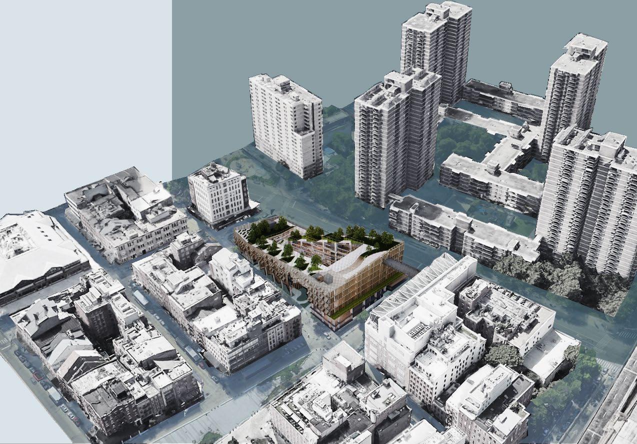 2022Located in a concrete jungle, Lower Manhattan lacks adequate green infrastructure. There is minimal green space in the surrounding neighborhood, and nearby schools lack adequate playground areas. More importantly, the climate is changing in the city. We are seeing flooding, heat waves, and severe thunderstorms. Thus the project must increase green space and address environmental concerns. Aware that foliage-covered facades don’t automatically equate to sustainable architecture, it has to be a living and built system that slows down, soaks up, and filters the changing climate.