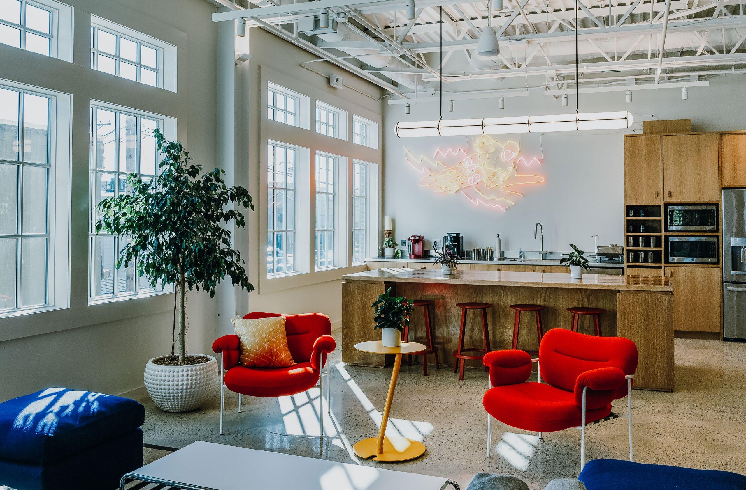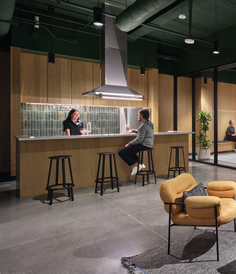 Amenities include co-working offices, bookable conference rooms, demo kitchen, training rooms, event spaces, community lounge, café, and a bike lounge. Our team collaborated with the architects, MEP, core + shell AORs, design managers, owners/developers, and contractors to make finish selections, millwork design and layout, coordinate the furniture and equipment selections, while also performing 3D modeling, and providing both construction documents and construction administration services.