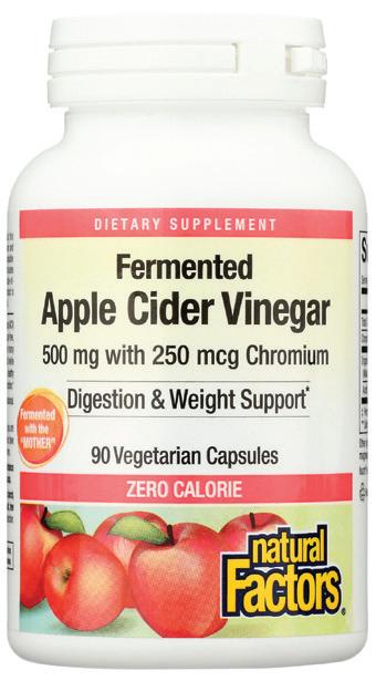 Supplies 500 mg apple cider vinegar fermented with the “Mother.”