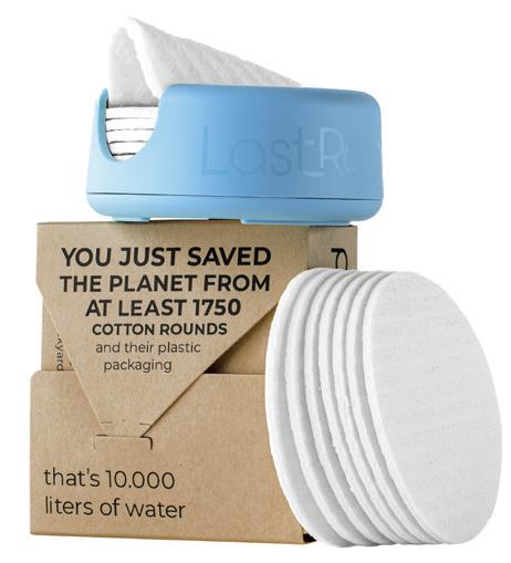 Reusable rounds made of a shape-shifting fabric that feels like regular cotton rounds when wet.