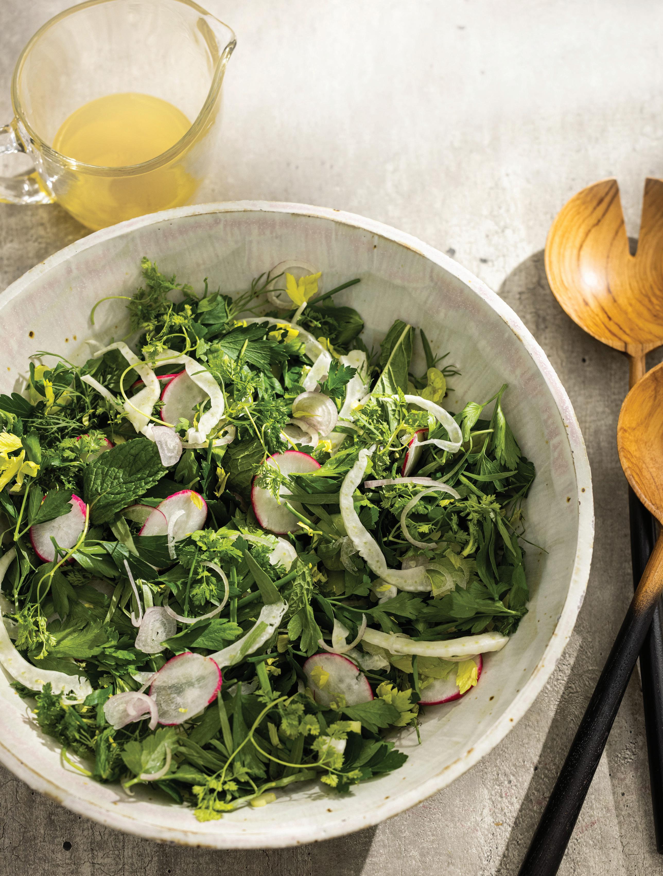 For freshness, brightness, and color, you can’t beat the addition of fresh herbs. Consider mint, chives, cilantro, thyme, dill, tarragon, basil, or rosemary.
