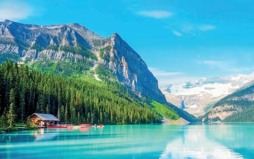 National Parks and visit the iconic Chateau Lake Louise, an historic log cabin hotel that overlooks the glacier-fed lake.