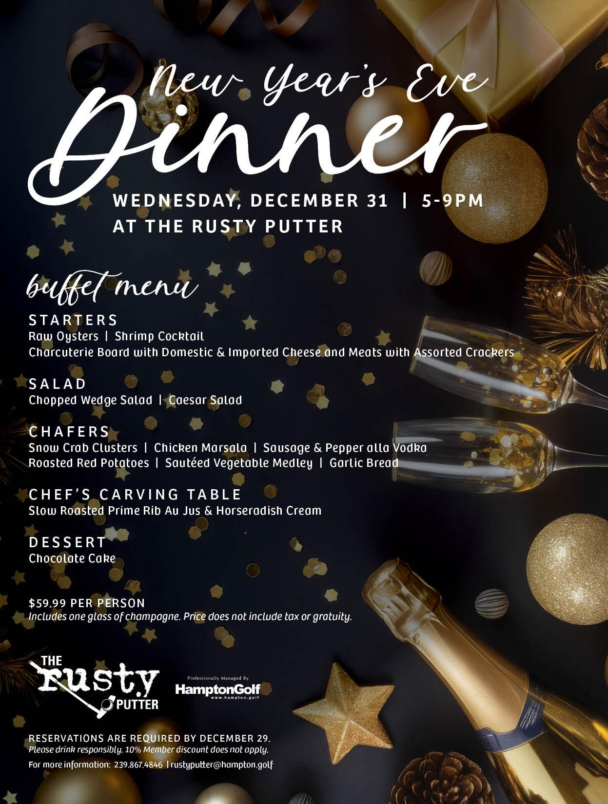 For special events with entertainment , reservations are required by email 24 hours in advance at rustyputter@hampton.golf . This is to help streamline the reservation process and ensure the correct Guest count. For these events, we offer a modified menu to ensure seamless and timely service and Guest satisfaction. Walk-ins are welcome but may experience a wait as reservations will be given priority.