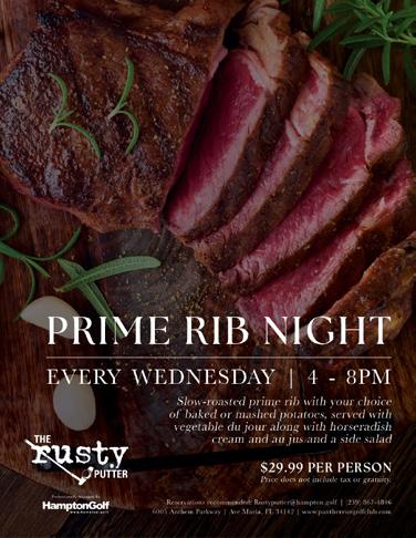 Dining reservations are strongly recommended for dinner nights. Seating times are offered from 4 - 8pm. We ask that all Guests see the host/hostess or a Team Member to be seated. Your reservations will allow our Team to create the quality offerings and services that all Residents and Guests expect. Availability may be limited as we continue to grow, so plan and request a specific seating time while providing other Residents' and/ or Guests' names when placing your reservation. For dining reservations, please email us at rpreservations@hampton.golf or call us at (239) 867-4846.