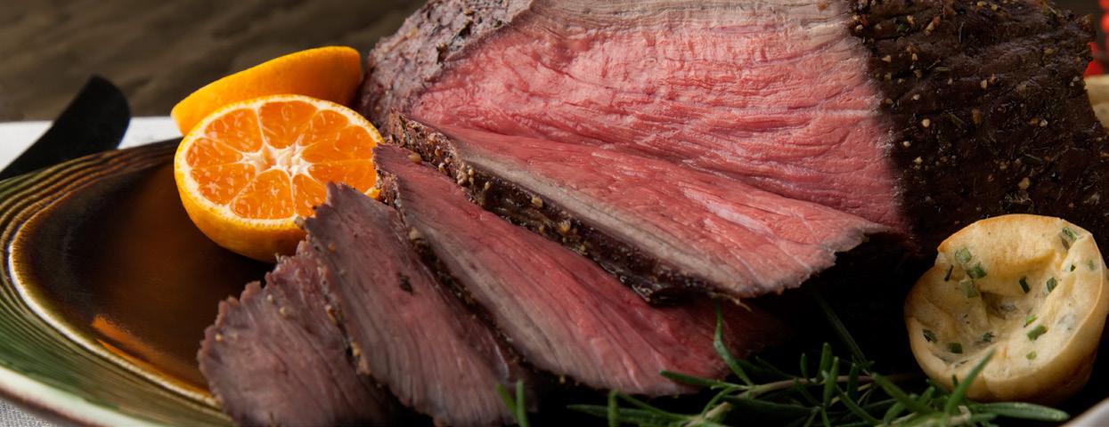 20 lb top round slow-roasted to your specification served with red wine jus. Serves 50-75 Guests