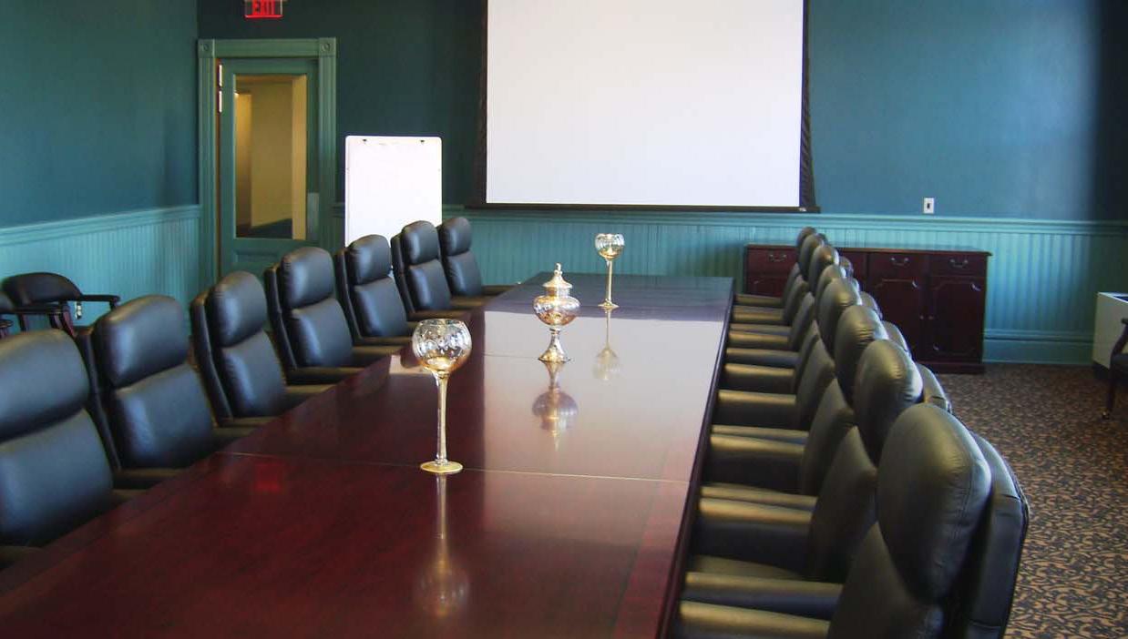 Equipped with a large board table, high black chairs and flexible audio visual capabilities. This room is perfect for business presentations and formal meetings.