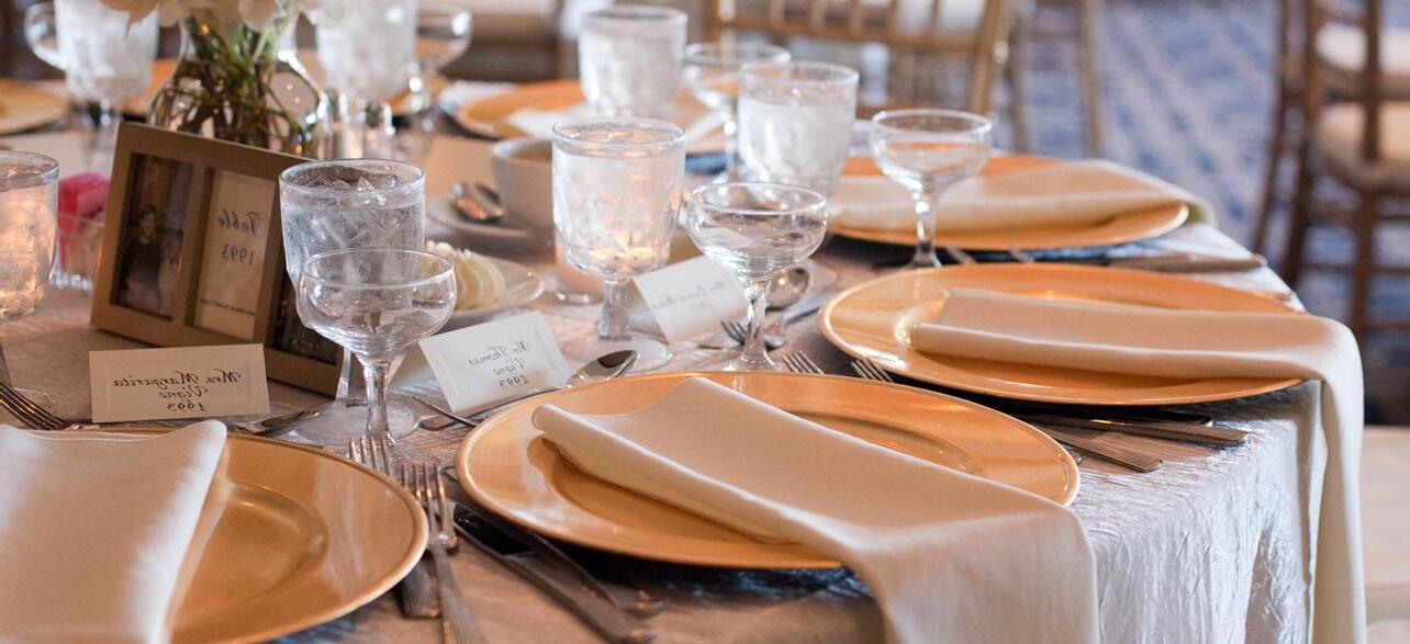 This package includes your facility fee, all tables and chairs, white floor length linens, dance floor, silverware, glassware and china, a variety of ceremony and reception locations, private dressing area, the cocktail hour with hors d'oeuvres, four-hour open bar with house liquors, wine and draft beer, a buffet or plated dinner, champagne toast and cake cutting service at just $110 per Guest.