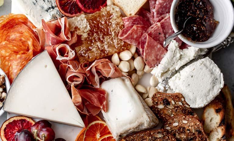 Priced per person. Includes charcuterie display, one salad, two entrées, one starch, chef’s farm-fresh vegetables, rolls with butter, iced tea and coffee
