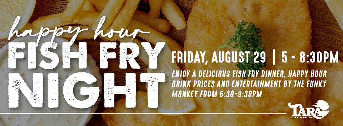 • Friday, August 29, Fish Fry/Happy Hour 5-8 pm