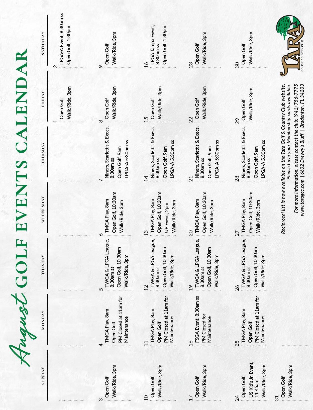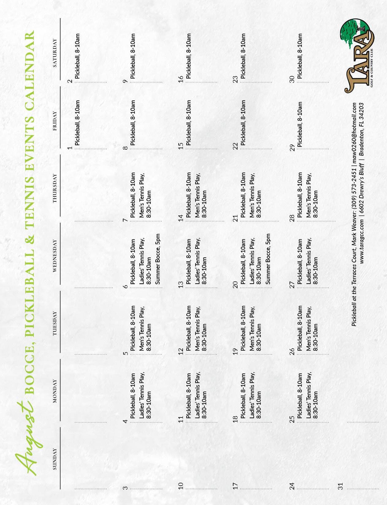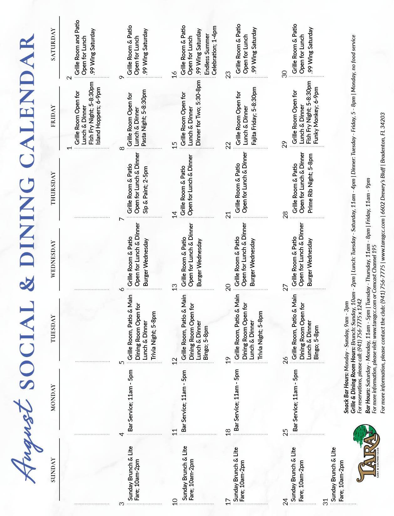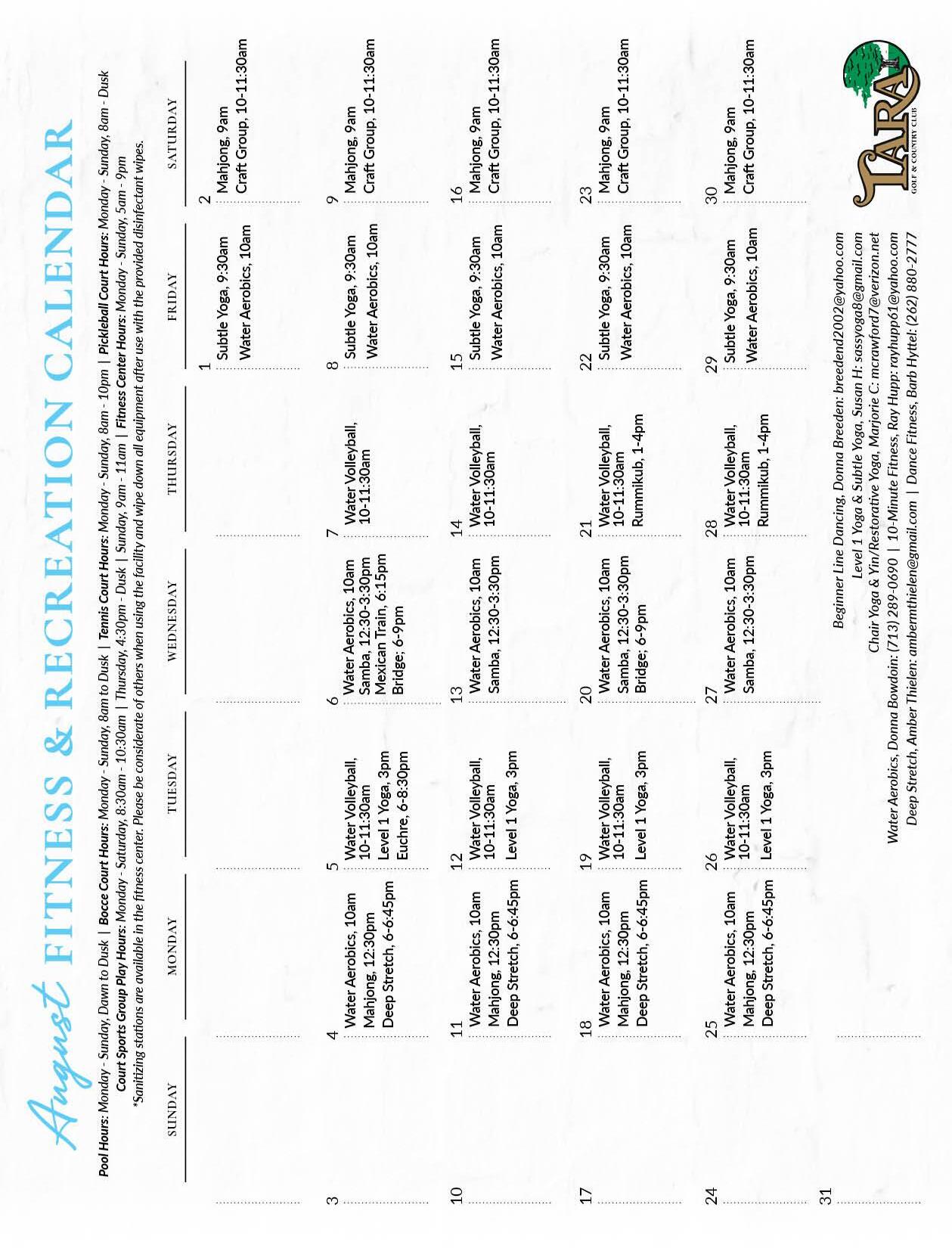 We hope August brings moments of both relaxation and connection for all of our members. As always, keep an eye on your inbox for updates on upcoming events, fitness activities, and everything happening here at Tara.