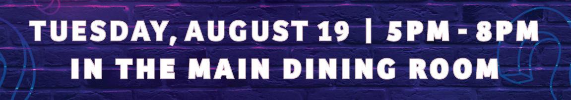 • Tuesday, August 19 – Trivia, Dinner menu 5-8 pm