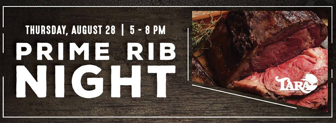 • Thursday, August 28 – Prime Rib Night, 5-8 pm