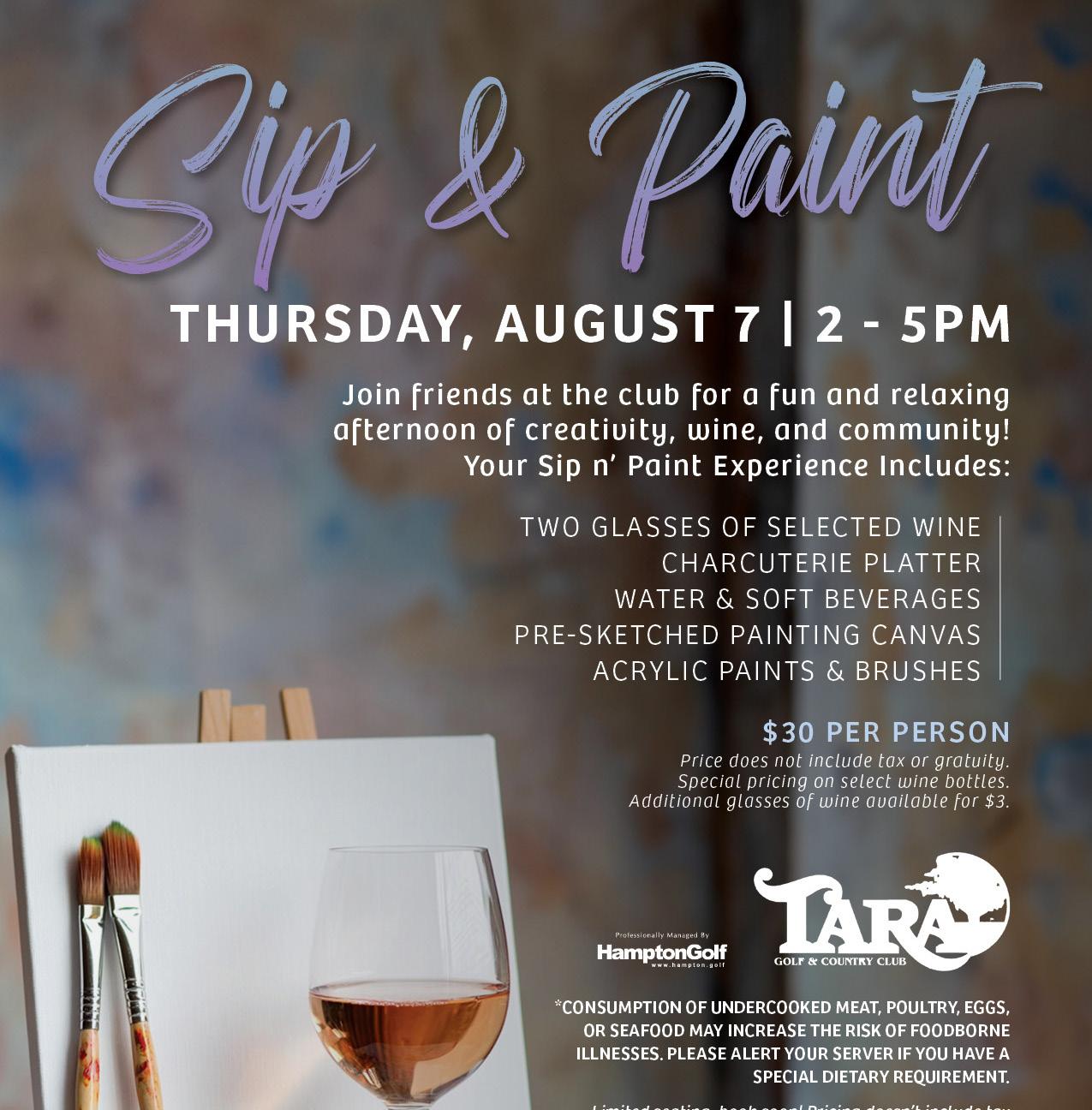 • Thursday, August 7 – Sip and Paint, 2-5 pm