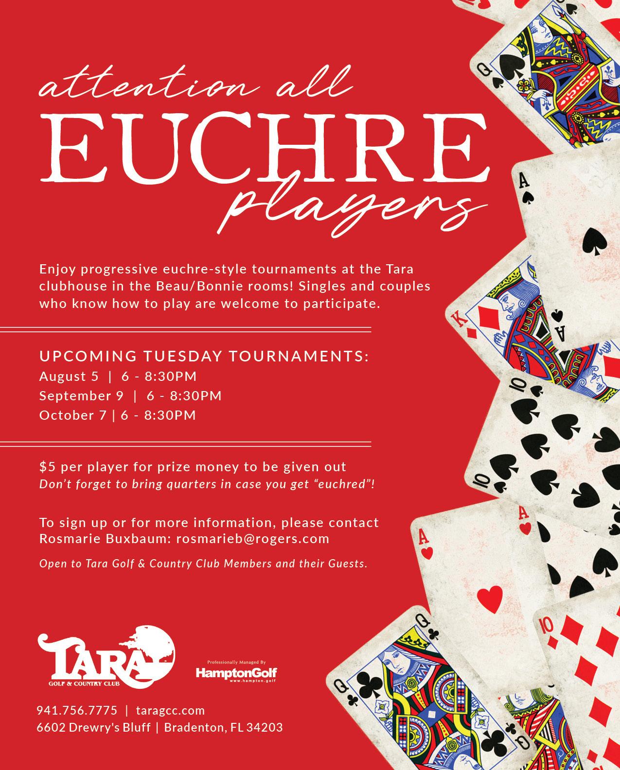 • Tuesday, August 5 – Euchre 6–8:30 pm