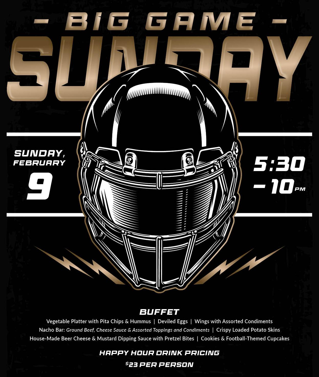 Get ready to cheer for your favorite team at our annual Super Bowl party on Sunday February 9th! Enjoy Happy hour drink specials throughout the night.