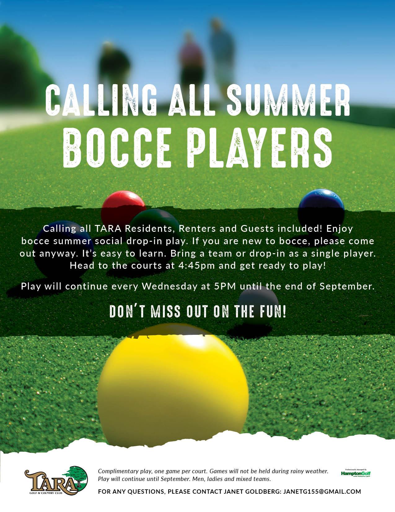 SUMMER BOCCE – Wednesdays | 5pm