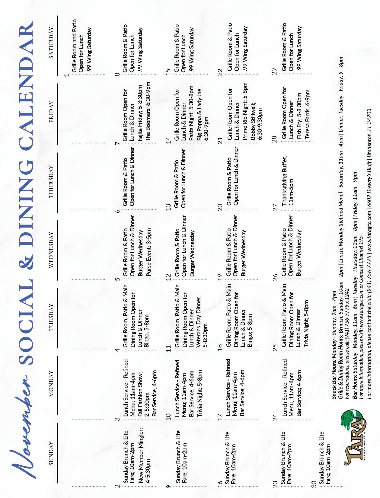 We are excited to welcome back our seasonal Members and kick off another great season here at Tara Golf & Country Club! The fall calendar is packed with exciting events, dining specials, and opportunities to gather with friends and family. Be sure to check out our upcoming activities you won’t want to miss a moment of what’s planned.