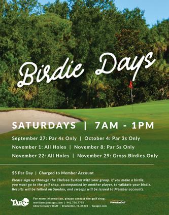 MESSAGE FROM MISSY WILLIAMS, HEAD GOLF PRO 941.758.7961 x1226 | mwilliams@taragcc.com