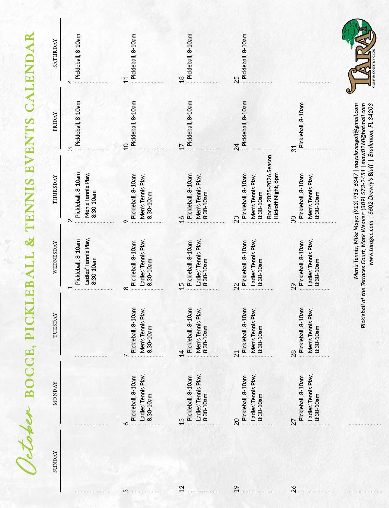 • Oct. 23 – Bocce Bash Dinner with an Italian buffet to kick off and celebrate our 2025–2026 bocce teams.