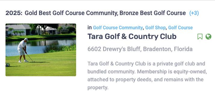 We are proud to announce that Tara Golf & Country Club has been awarded GOLD in the 2025 Bradenton’s Best for Best Golf Course Community!