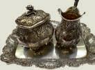 Neuwertige Kaffeekannen aus hochwertigemKnochen-Porzellan, Größen400mlund600ml,zuje 25St.und Buffetvitrine, mitPlatz fürsechsGastrobleche,Maße:Länge 2,06mx0,80mBreite,um900Euro zuverkaufen. Tel.3356951232