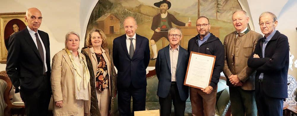 Den Jahresempfangdes HGVundden Wechselder PräsidentschaftimHGV nutzteLandeshauptmann Arno Kompatscher,um zunächstdemscheidenden PräsidentenManfredPinzgerfürdieguteZusammenarbeitinden vergangenen zwölf Jahren zu danken.„Es warennichtimmerleichte Zeiten. Vorallemwährend der Pandemie. Du bist aber immer ruhig geblieben“, sagte Kompatscher Auch wennmancheEntscheidungenschwierigwaren,so konntenimmertragfähigeLösungen gefunden werden.