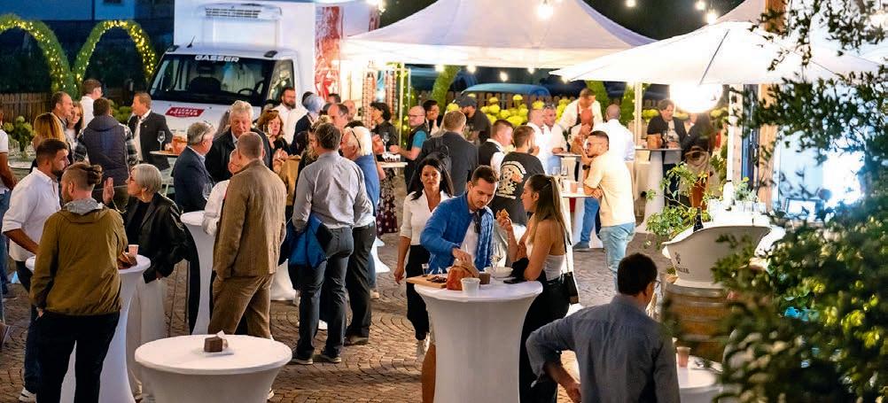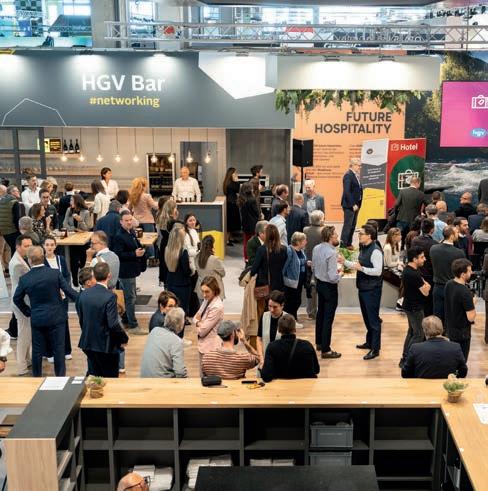 ImObergeschossdes HGV-Standeswurdenin Form von KurzeventsaktuelleServicesdesHGV vorgestellt.Beieinem Aperitivo konntensich dieBesucherinnenundBesucher untereinanderodermitden ExpertinnenundExperten desHGVüberdieneuesten Trendsinder Hospitality austauschen.