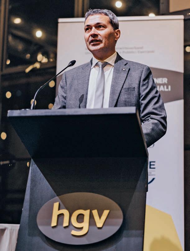 Siehabenesangesprochen.InIhreZeitalsPräsidentfielauchdieZeitder Pandemie… Daswarvielleichtdie schwierigsteZeit, weil von einemaufdenanderen Tag dieGastronomiebetriebe geschlossenwurdenund dieHotelsaufgrundder Tatsache,dassdieMenschen weltweitnichtmehr reisen durften,ohneGästewaren. Daswareinesehrschlimme Zeit,auch weilwiralsHGV als VertretungunsererMitgliedsbetriebemitvielen Vorschriftenund Vorschlägen konfrontiert worden sind.IchdankeallenMitgliedernundderenMitarbeitenden,die Vertrauenbewahrt unddurchgehaltenhaben. Diese Haltung war für unser Comebacknachder Pandemieessenziell.