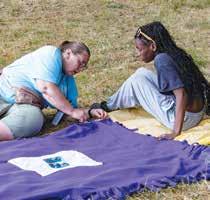 Kristine Jordahl Camp Courage Counselor Pamela Wingard and campers try a new craft project