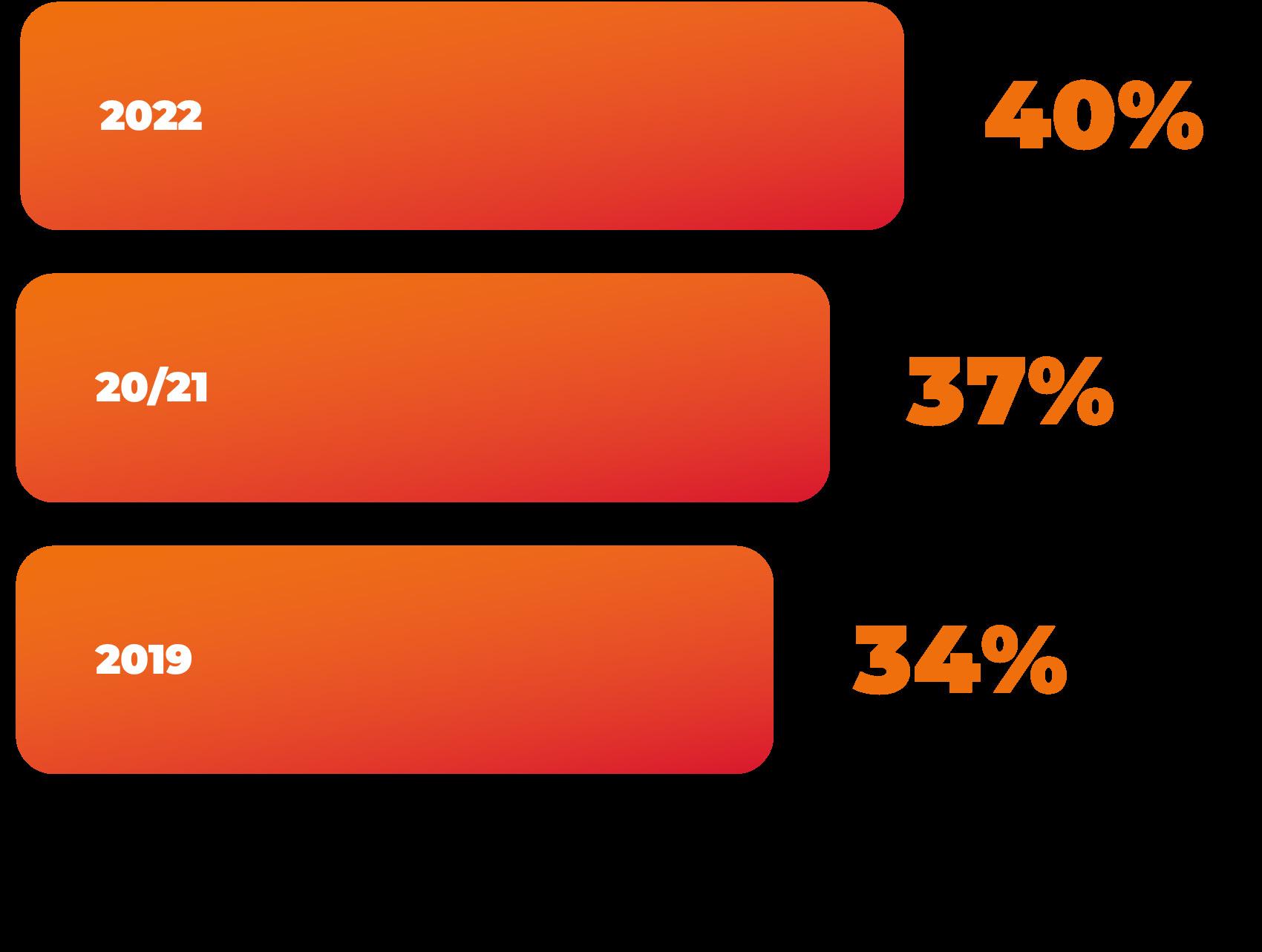 >> Rising steadily: 20% (2012), 44% (2014), 66% (2016), and 83% (2018)