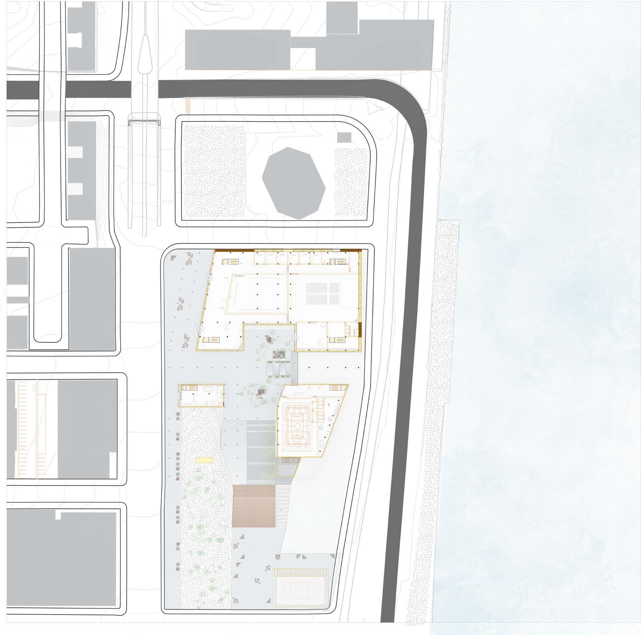 Providing people with a calming place for recovering. Combining the rehab programs with the residents to challenge the traditional boundary between a healthcare facility like a rehabilitation center and the city.