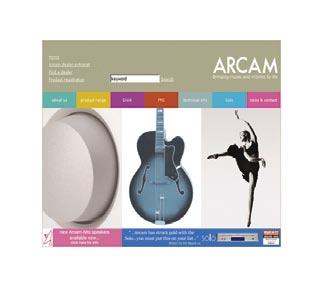 Stranica na prvi pogled deluje kao prezentacija neke modne kuće ili časopisa. Izraženih boja i smelog dizajna, teško da sugeriše na proizvođača Hi-Fi opreme sa dugogodišnjom tradicijom. Posle kratkog navikavanja na moderan interfejs, snalaženje postaje veoma jednostavno i lako je pronaći podatke za proizvode koje Arcam ima u ponudi. Svaki model je propraćen detaljnom dokumentacijom u PDF formatu, kao i solidnim fotografijama.Prilagođavanje tržištu je uslovilo da proizvodi budu podeljeni u dve klase: Diva (srednja) i FMJ (visoka), uz posebno istaknut Solo, koji je priča za sebe. Koncipiran kao sve-u-jednom uređaj, sa CD plejerom, radio-prijemnikom, predpojačalom i pojačalom snage, Solo krase napredne mogućnosti i futuristički dizajn. Diva i FMJ imaju slično dizajniranu spoljašnjost, ali su zasnovani na konceptu odvojenih komponenti. Očigledno je da su ciljna grupa kupci koji pored kvalitetnog zvuka mnogo polažu i na izgled samih komponenti.