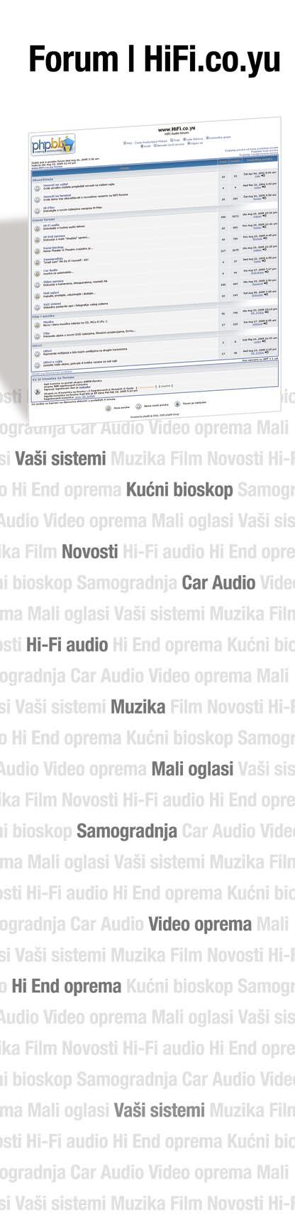 Dragi ljubitelji dobrog zvuka i slike, dok novogodišnja euforija prolazi, lagano sabiramo utiske iz prethodnog perioda i prisećamo se nedavno održane izložbe Audio Video Show 2005. To je bila sjajna prilika da se lično upoznamo i razmenimo mišljenja i stavove. Verujem da su svi uživali u zvuku i slici reprodukovanim sa najreprezentativnije opreme koja se može pronaći na našem tržištu.