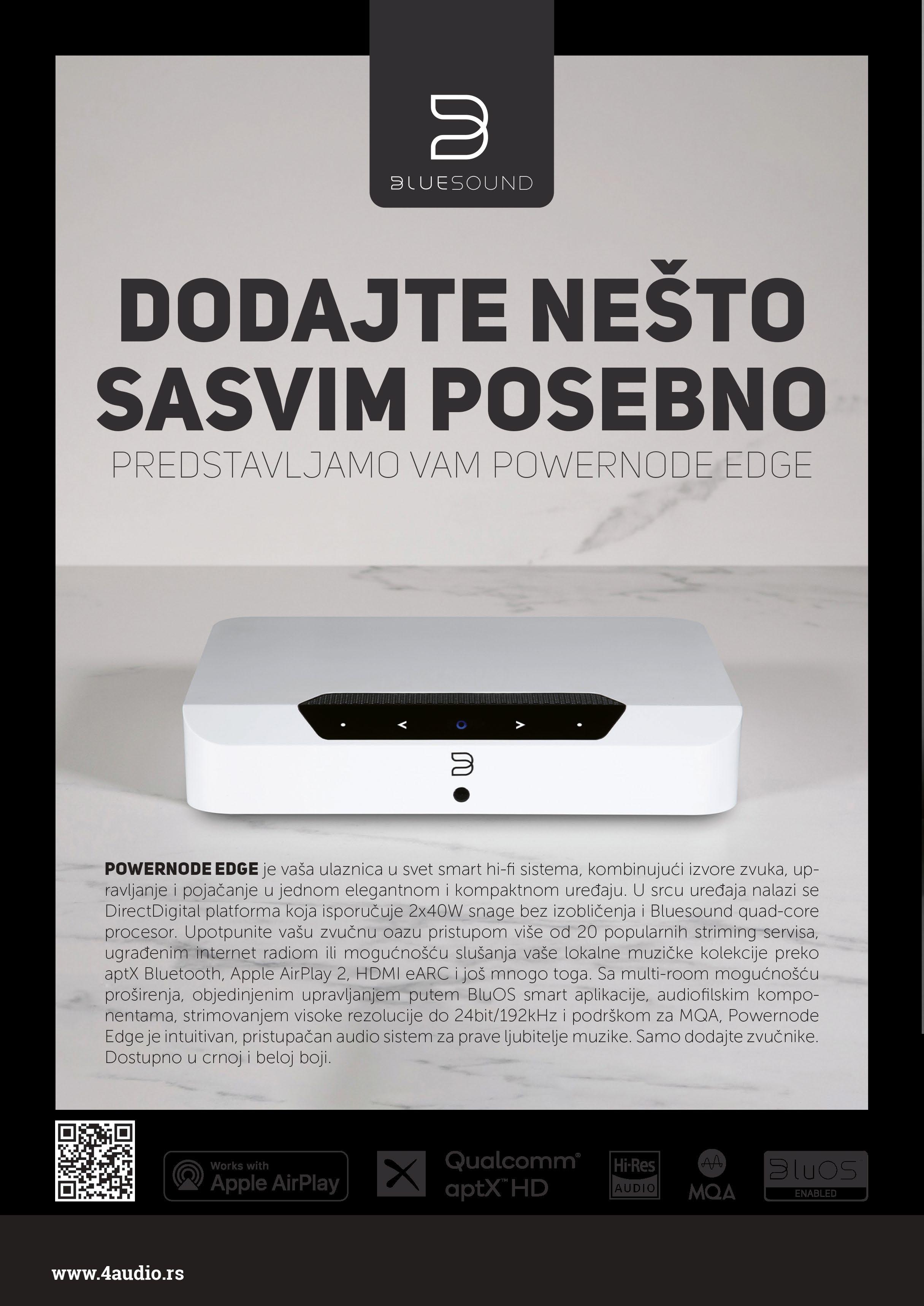 Plus: napredna tehnologija, odlična BluOS platforma, detaljan i muzikalan zvuk, obilje snage