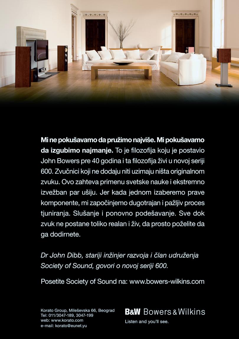 Pokušali smo da razbijemo monotoniju nekim novim uređajima, kao što je Sanyo Full HD projektor, kao i Apple TV – savršen medija centar za fanove digitalnog doma. Podrazumevano, tu su i audiofilske poslastice poput Supernova CD plejera i Unison Research Preludio lampaša. Pored renomiranih svetskih proizvođača, na našim stranicama našlo se mesta i za testove proizvoda čak četiri domaće firme: Dayens, Bračinac Audio Systems, N. N. Acoustic i Šolaja Audio. Zanimljivo je da su neke od ovih firmi veoma mlade, ali da već prvi primerci njihovih uređaja pokazuju veoma visok nivo kvaliteta izrade i - najvažnije - reprodukcije zvuka. Ne smemo zaboraviti ni firmu Trafomatic, koja je upravo osvojila godišnju nagradu sajta 6moons.
