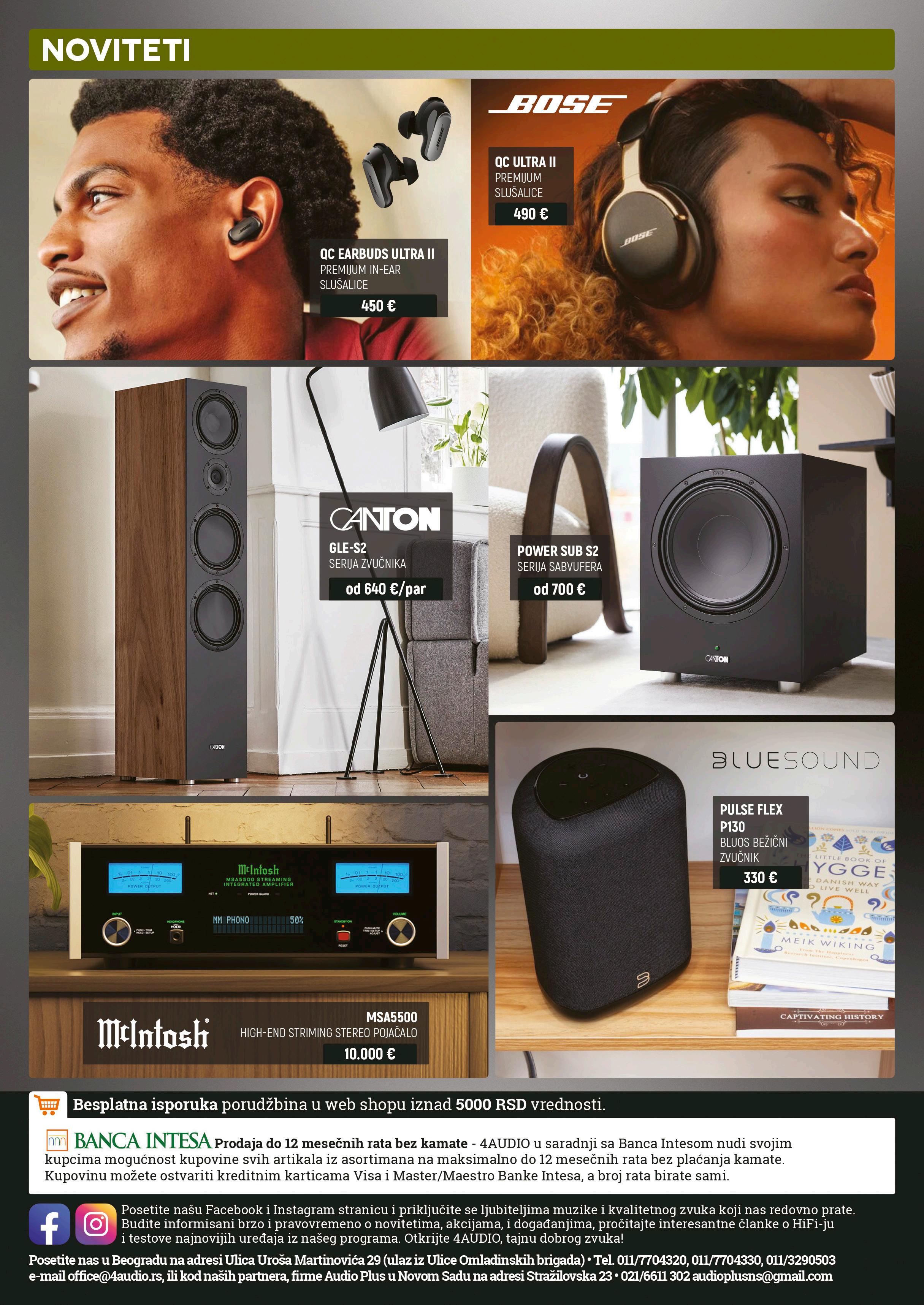 J-FET tranzistorima, Tube, s cevima GE5670, i Tube+, koji zvuku daje dodatnu toplinu. Izlazna snaga deklarisana je na preko 4,6 vati pri otporu od 64 oma, uz kompatibilnost sa slušalicama impedanse do 600 oma. Uprkos skromnom gabaritu, masa uređaja iznosi 3,6 kilograma, a iFi iDSD Phantom prodaje se za oko 4.700 evra. i www.ifi-audio.com M 4.700 €