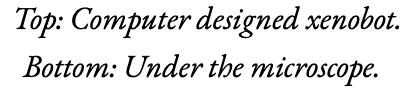 Scientists have discovered an African frog skin cell that has the ability to replicate itself. From this initial observation, scientists and AI designed xenobots, microscopic fabricated lifeforms that can replicate using cells found in their environment. Xenobots are blobs of frog skin stem cells and cardiac (heart) cells that knit themselves together. After the cells are moved from their normal location on embryonic frogs, they reorganize into balls and repurpose themselves within a few days to swim Each xenobot has a protrusion (called a “cilia”) that allows it to move around freely Cell cilia on frogs are used for a di erent purpose than those on xenobots, which demonstrates how well and quickly xenobots adapt.