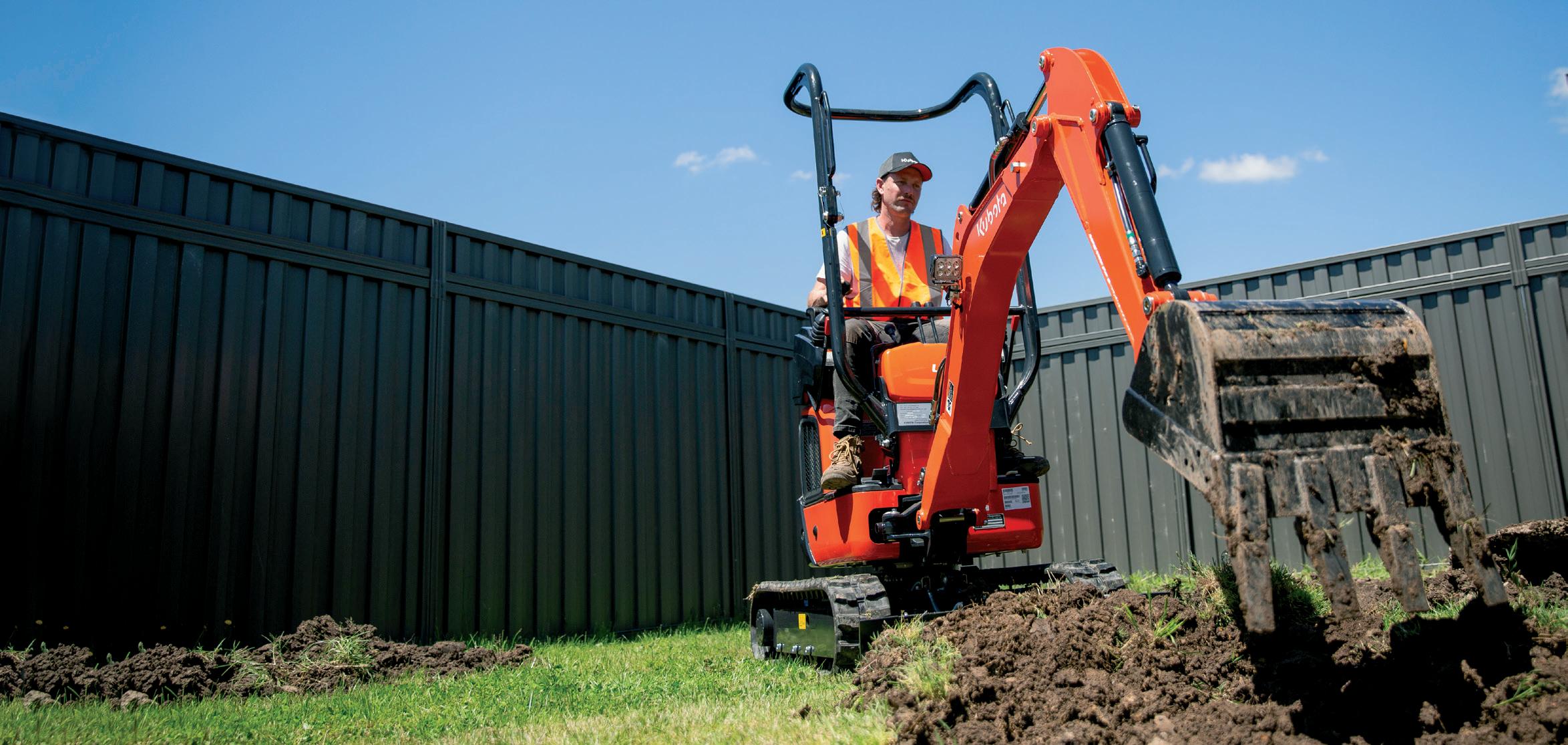 The U10-5 is Kubota’s newest 1.2 tonne compact excavator. Now with hydraulic pilot controls and zero-tail swing there’s not many jobs the U10-5 can’t do. You’ll love the variable track width of 990mm down to 750mm, comfort of operation, and the powerful Kubota engine able to tackle a wide range of tasks with ease.