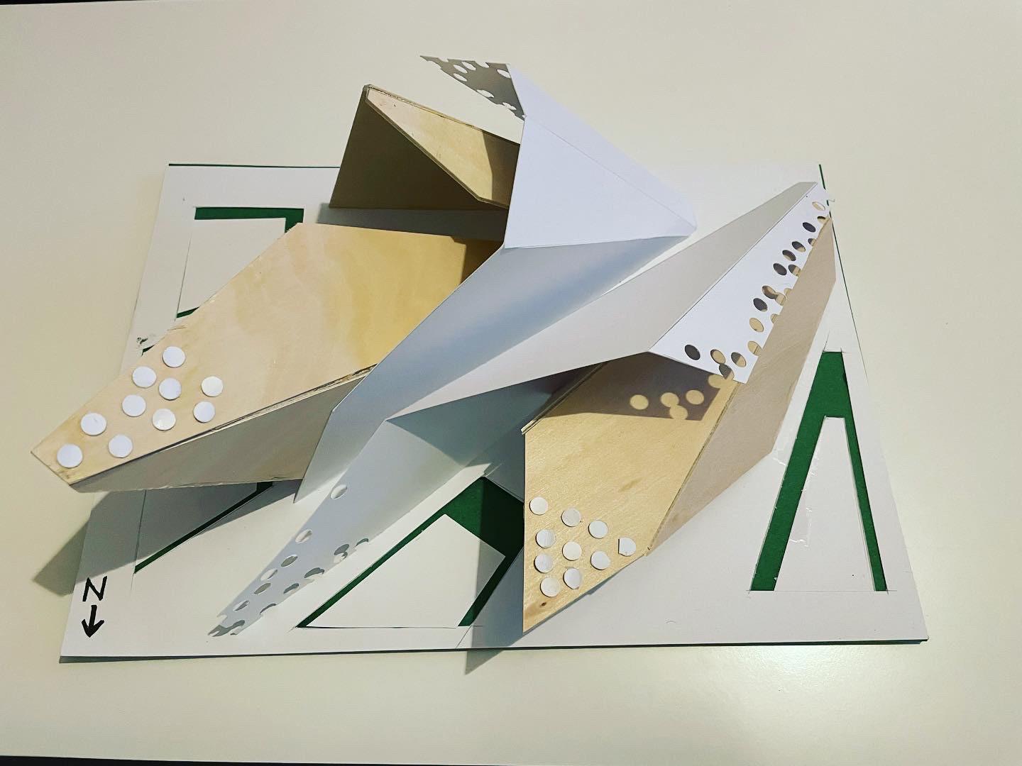 The design concept is to make the exhibition building as landmark for the city. Therefore, I used the building’s wide surfaces and edges with sharp endings as strong design statement. The surfacs palyes as functional cantilever for open garden gallieries. Also the sharp edges and surfaces to define the entrances for the visitors.